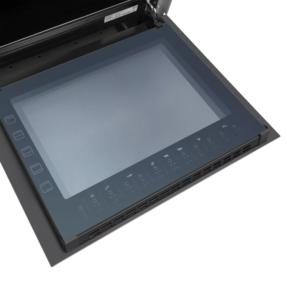 В духовом шкафу объёмом 59 л предусмотрено 15 функций и продуманная конвекция для равномерной пропекания. Съёмное тройное стекло дверцы, рецепты на дверце и хромированные направляющие делают процесс приготовления ещё удобнее, а освещение камеры помогает контролировать результат в любой момент.