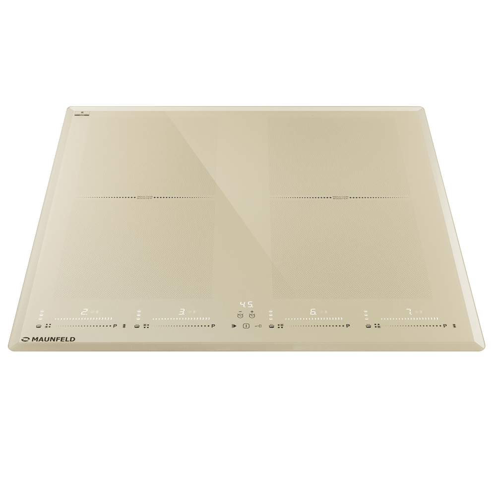 Поверхность выполнена из стеклокерамики: в бежевом цвете используется японская Nippon Glass с повышенной прозрачностью и стойкостью к царапинам; она легко очищается и остаётся прохладной вокруг посуды благодаря природе индукции. Таймер до 99 минут, три предустановленных режима (размораживание, подогрев/поддержание теплоты, сильный нагрев) и режим «Stop+Go» помогают гибко контролировать процесс.