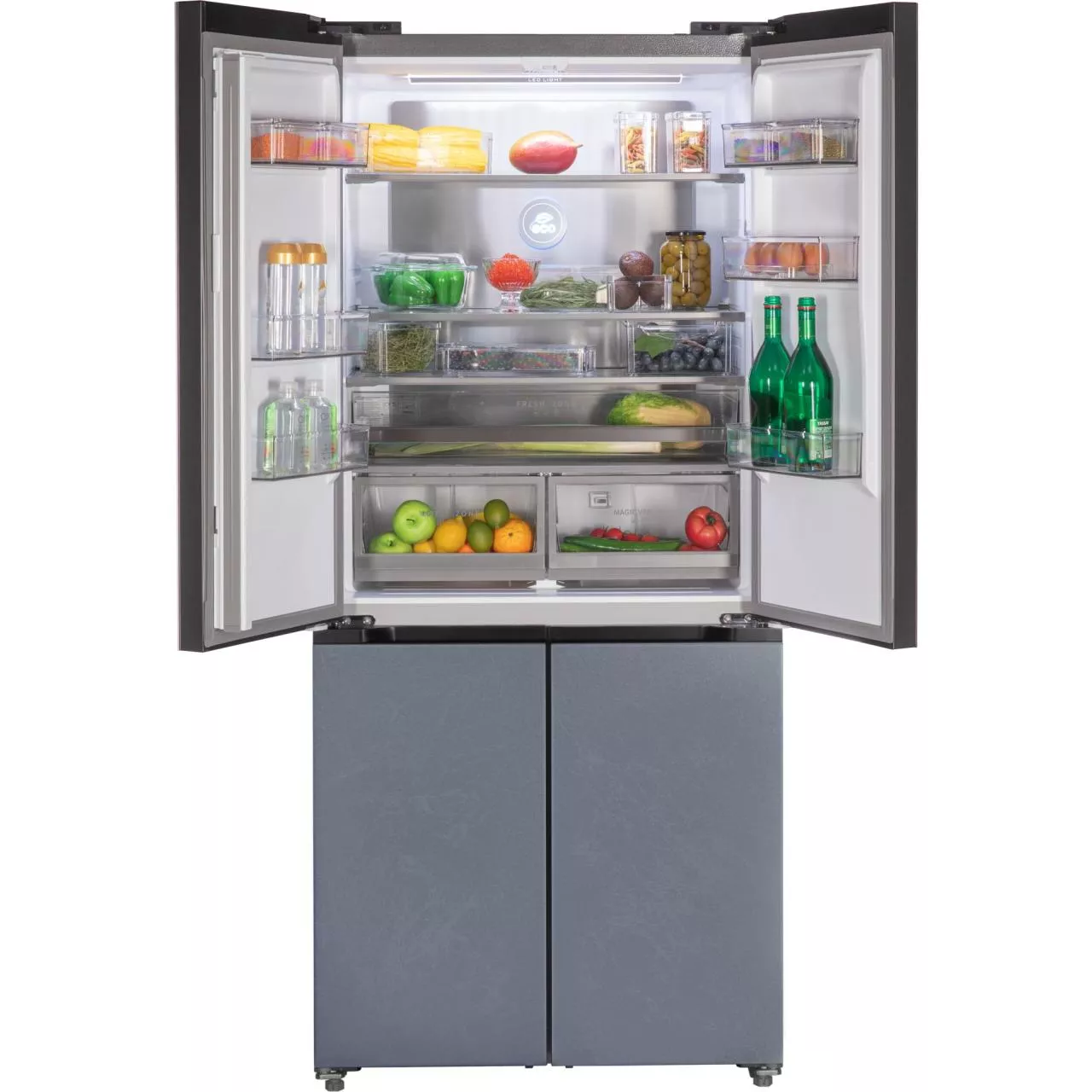 Четырехдверный холодильник HIBERG RFQ-600DX NFGC в эффектном цвете «холодный серый», со стеклянным фасадом и возможностью встраивания идеально впишется в кухонный гарнитур, создаст стильную и уютную атмосферу. Модель общим объемом 526 литров предназначена для хранения большого количества продуктов и напитков в частных и загородных домах, просторных квартирах и современных крупных офисах.