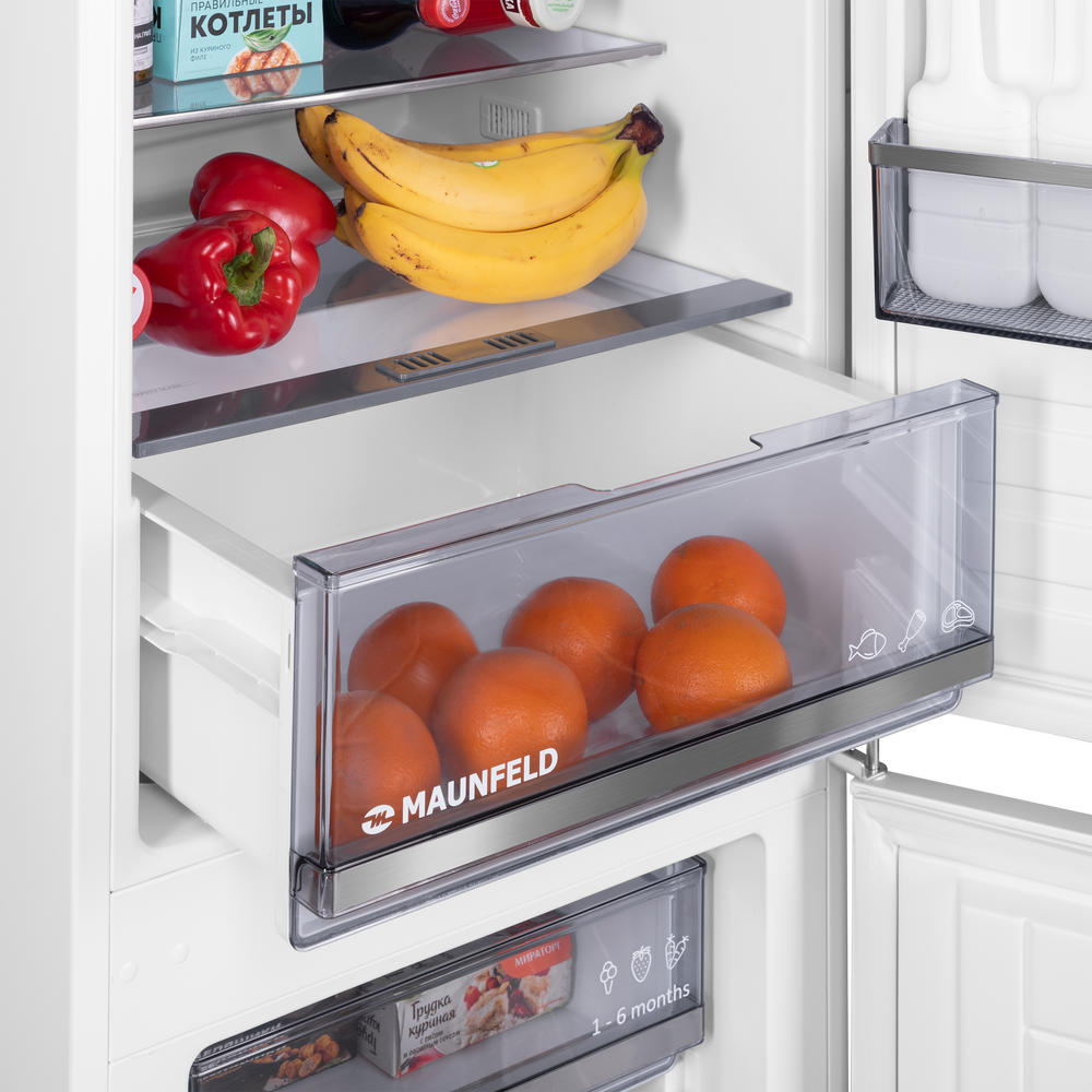 Встраиваемый холодильник с инвертором MAUNFELD MBF177SWGR Inverter — практичное решение для аккуратной интеграции техники в кухонный гарнитур и комфортного повседневного использования. Модель легко вписывается в высокий шкаф и помогает поддерживать порядок внутри камер.