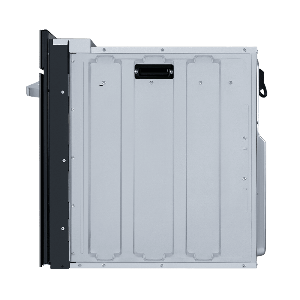 Тангенциальное охлаждение снижает нагрев мебели вокруг, а трехслойная дверь формирует безопасно прохладный внешний фронт — удобно, когда на кухне дети. Тонированное внутреннее стекло скрывает камеру при выключенном свете и, наоборот, открывает хороший обзор процесса готовки при включенной подсветке.