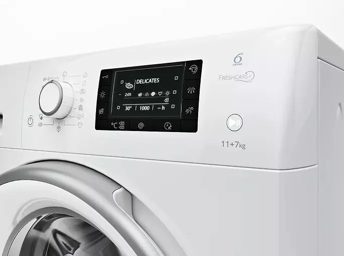 Машина серии Whirlpool FWDD 1071682 WSV EU N FreshCare+ при желании может обрабатывать белье после цикла стирки или сушки и продлевает ощущение и запах свежевыстиранного белья. Он также имеет четкий дисплей на финском языке, очень подробные программы и полезные дополнительные опции, такие как ускоренные программы и дополнительные полоскания.