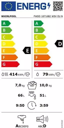 Класс энергопотребления: Стирка D / Сушка E.