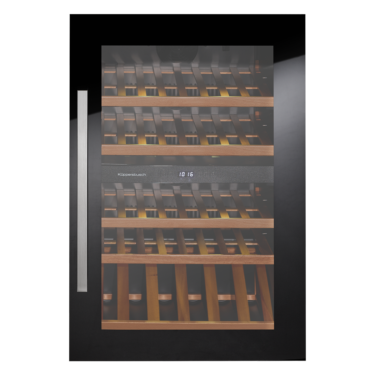 Встраиваемый винный шкаф Kuppersbusch FWK 2800.0 S с дверцей из черного стекла — это стильное и функциональное решение для хранения и созревания вин. Модель рассчитана на 56 бутылок и оснащена двумя независимыми контурами охлаждения, позволяющими поддерживать температуру в диапазоне 5–18 °C во всей камере. Электронное управление с цифровым дисплеем и кнопочной регулировкой обеспечивает точный контроль климата. Внутреннее оснащение включает 4 деревянные полки, устойчивые к вибрациям и обеспечивающие правильное хранение бутылок в горизонтальном положении. Светодиодное освещение деликатно подсвечивает коллекцию без нагрева. Дверца с защитой от УФ-лучей предохраняет вино от вредного воздействия света. Шкаф предназначен для встраивания в колонну шириной 60 см. Система охлаждения статическая (капельная) с автоматическим размораживанием. Акустическая сигнализация оповещает о неисправностях и открытой дверце. Возможность перенавеса двери позволяет адаптировать установку под планировку кухни. Класс энергоэффективности A+, годовое потребление 145 кВт·ч. Производство — Китай, гарантия 24 месяца.