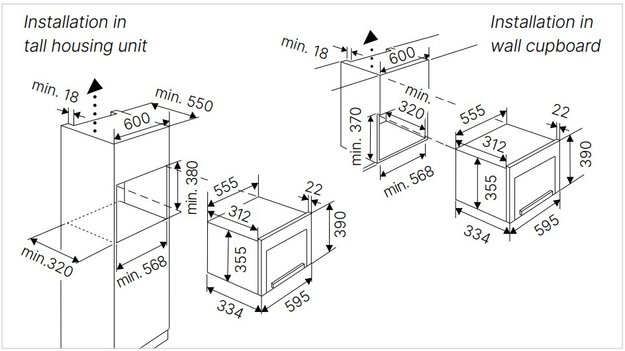 • Размеры ниши для встраивания (В×Ш×Г): 37–38 × 56.8 × 32 см