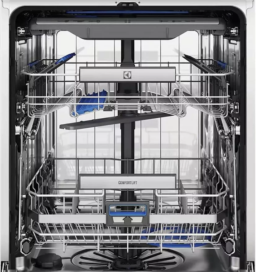 Внутренняя камера выполнена из нержавеющей стали, что обеспечивает ее долговечность и гигиеничность. Корзины RealLife XXL позволяют разместить большое количество посуды различных размеров и форм, а нижний распылитель FlexiSpray обеспечивает равномерное распределение воды по всей загрузке. Нижняя корзина оснащена системой ComfortLift, которая облегчает загрузку и выгрузку посуды.