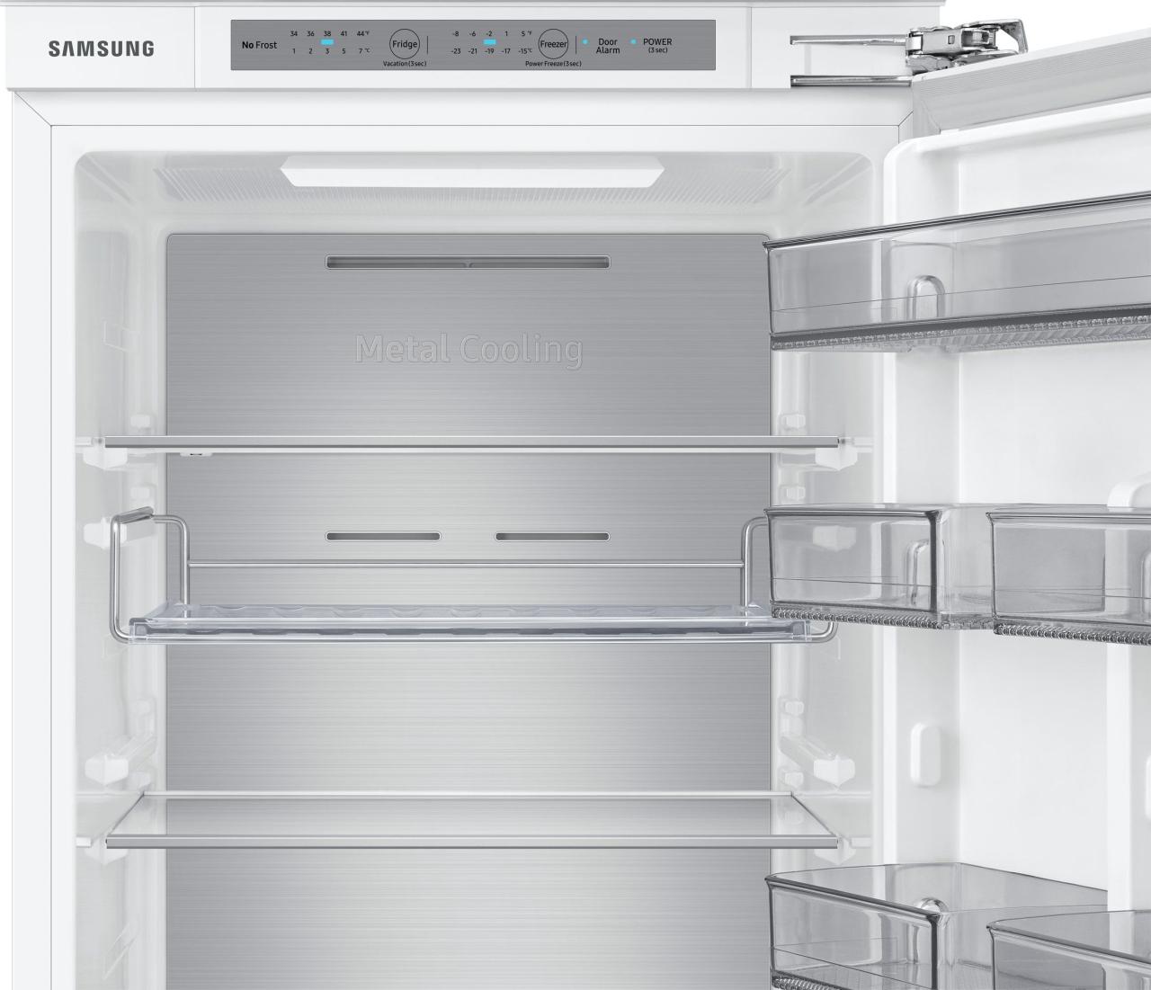 Встраиваемый холодильник Samsung BRB26715EWW — выбор для тех, кто ценит продуманную организацию пространства и стабильную свежесть продуктов. Панельная конструкция легко впишется в гарнитур, а внутреннее оснащение помогает поддерживать порядок и быстрый доступ к повседневным запасам.